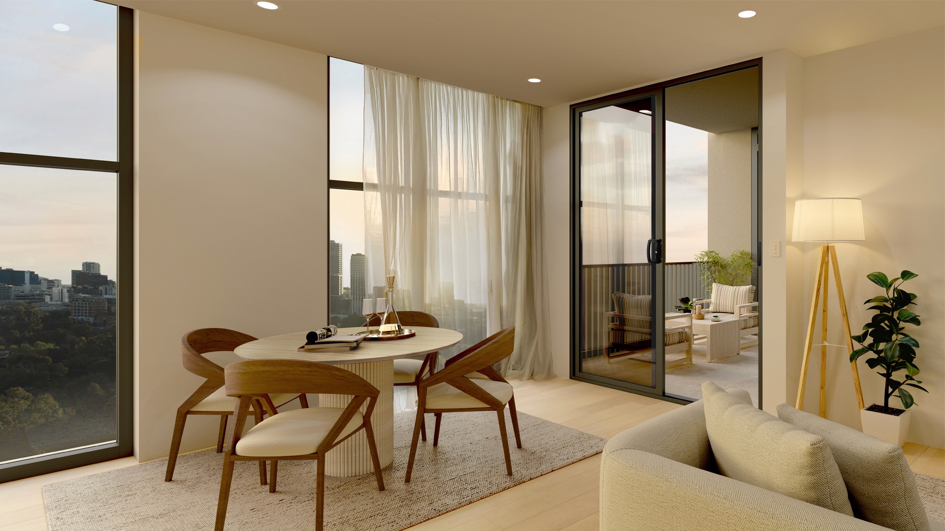 Sweeping views across Adelaide’s treasured parklands to the city skyline create a panorama that will never be compromised. Each residence features generous balconies that seamlessly blend indoor comfort with outdoor elegance, offering an elevated setting for quiet reflection or elegant entertaining.